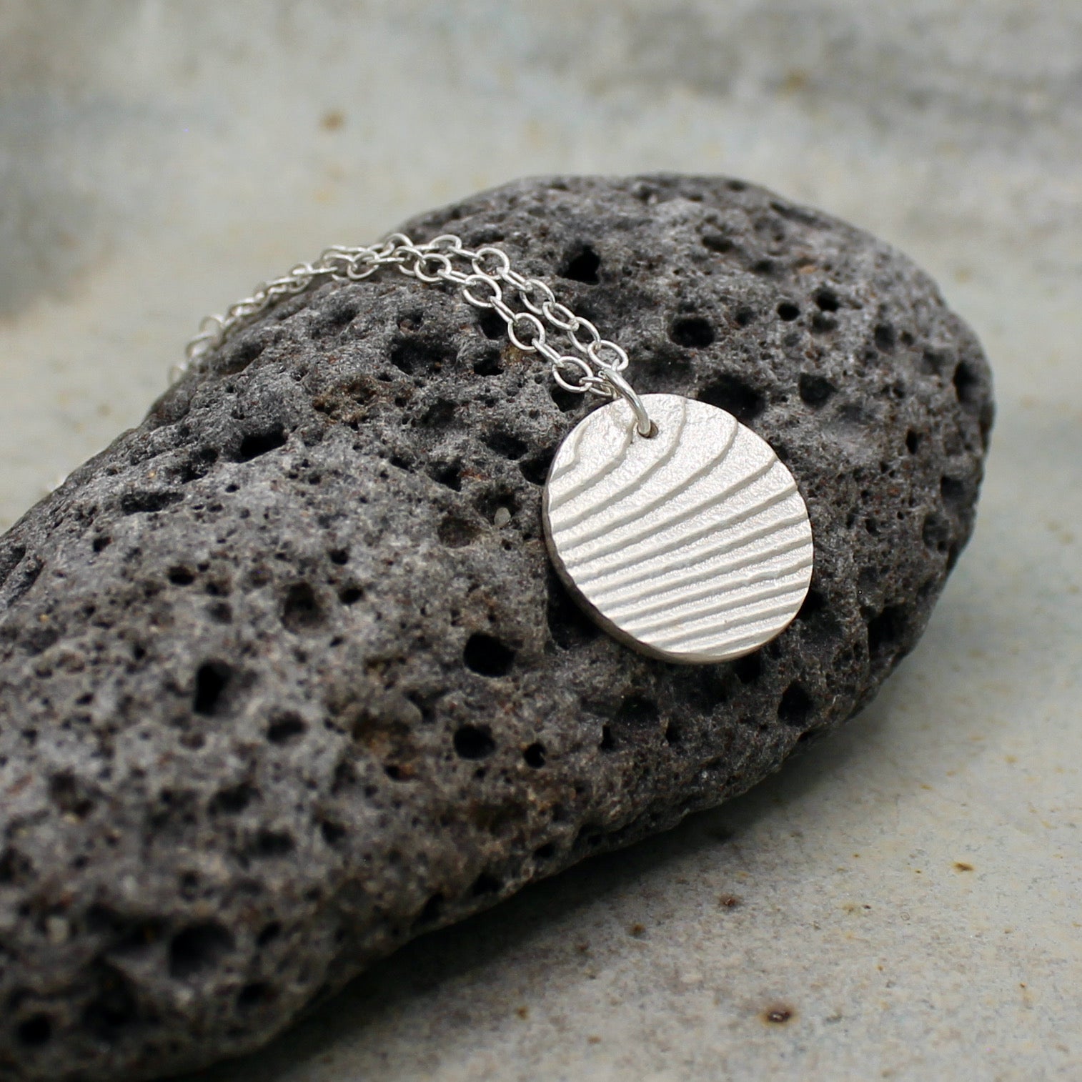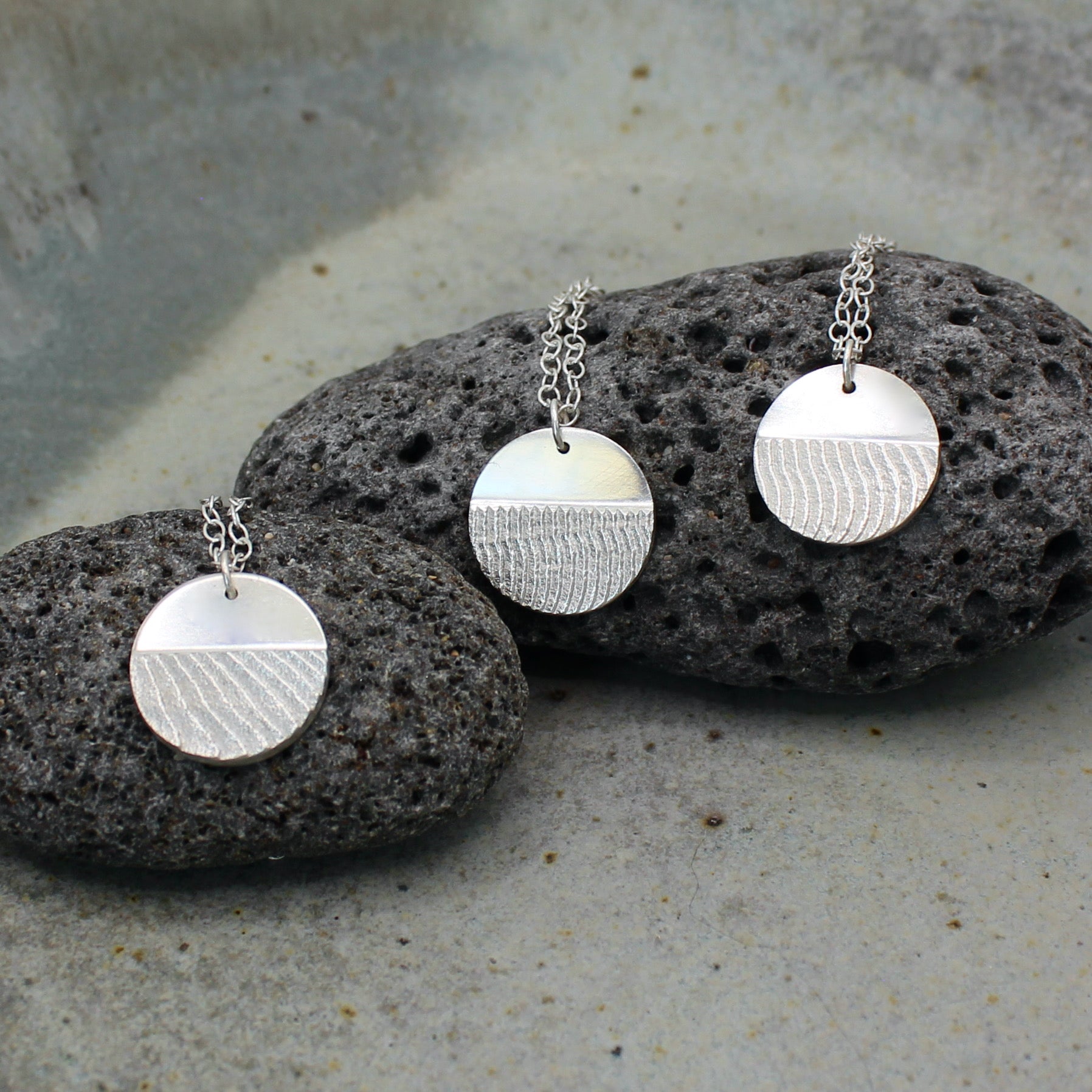 As we make a new mould for every piece, each pendant has its own unique texture - like a fingerprint from the ocean. Even the back of your necklace has a different texture from the front!