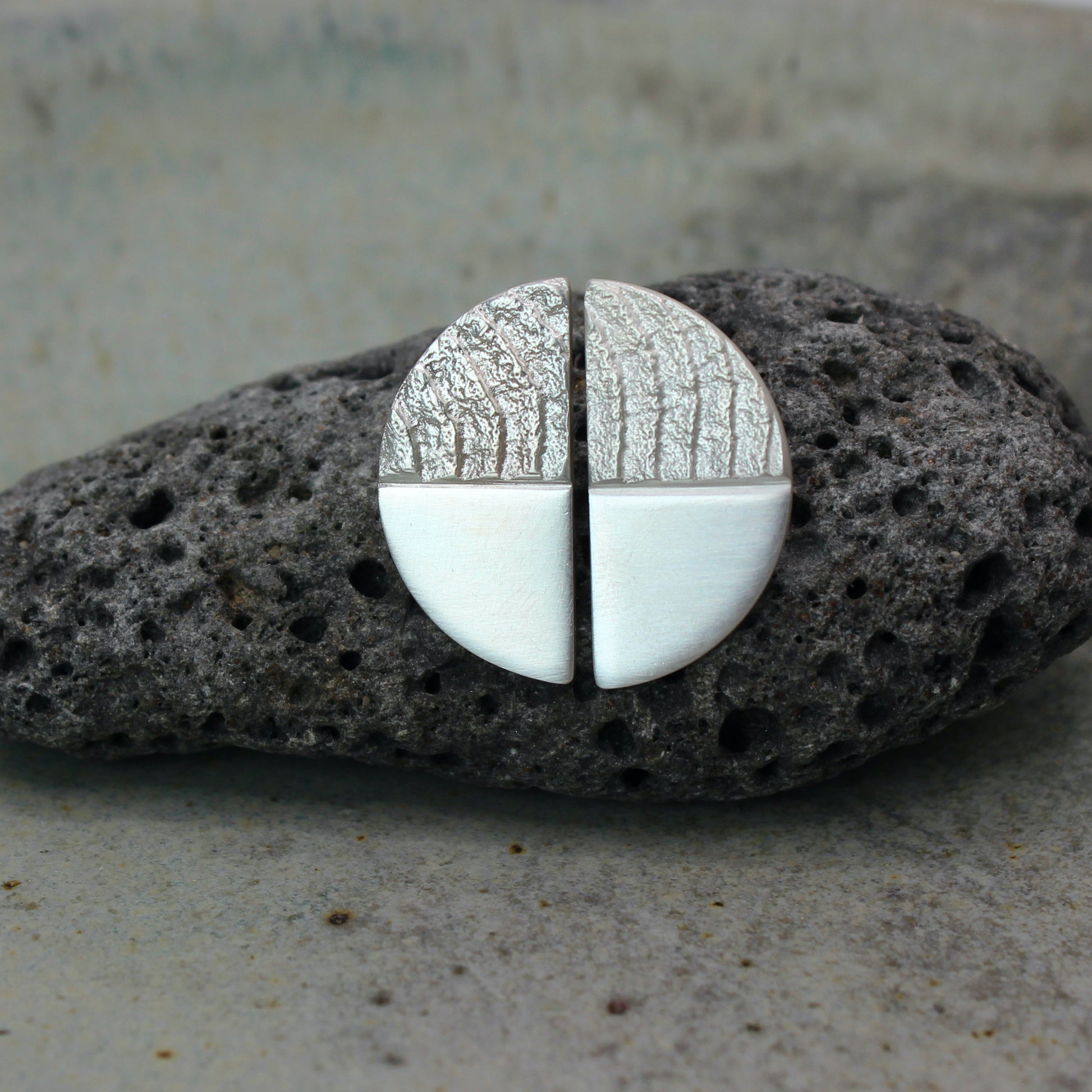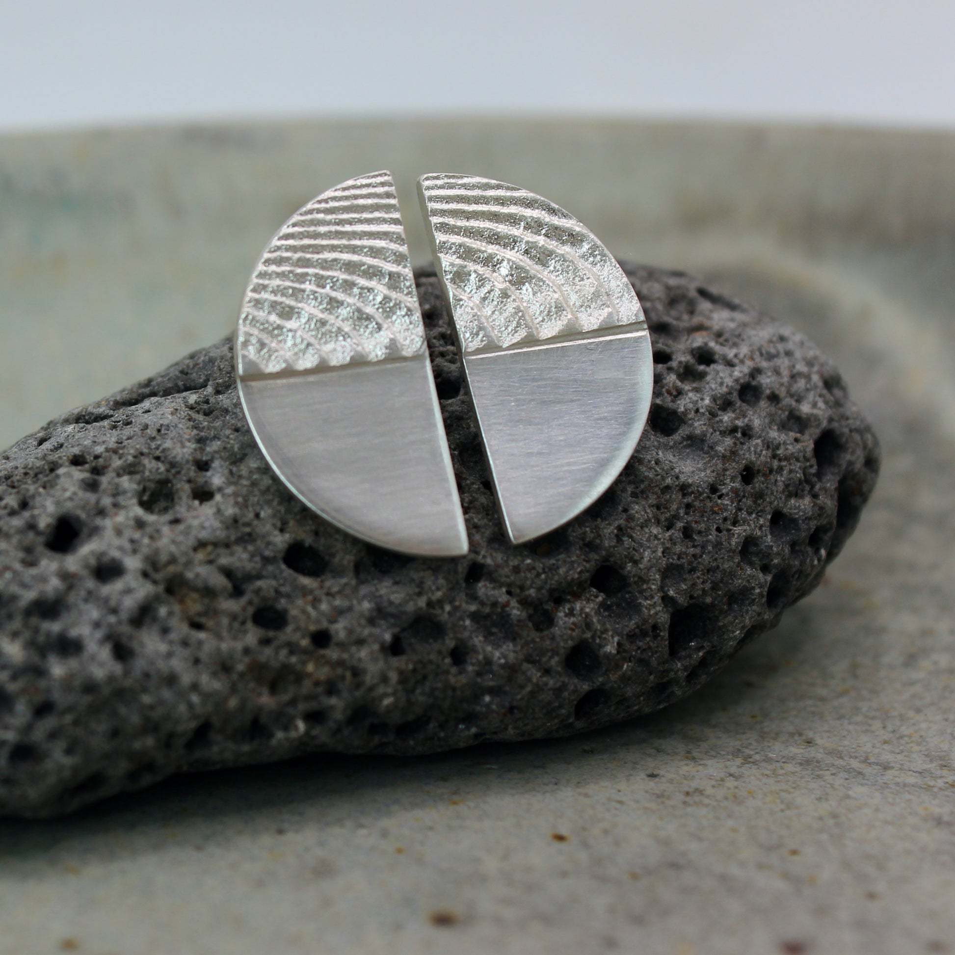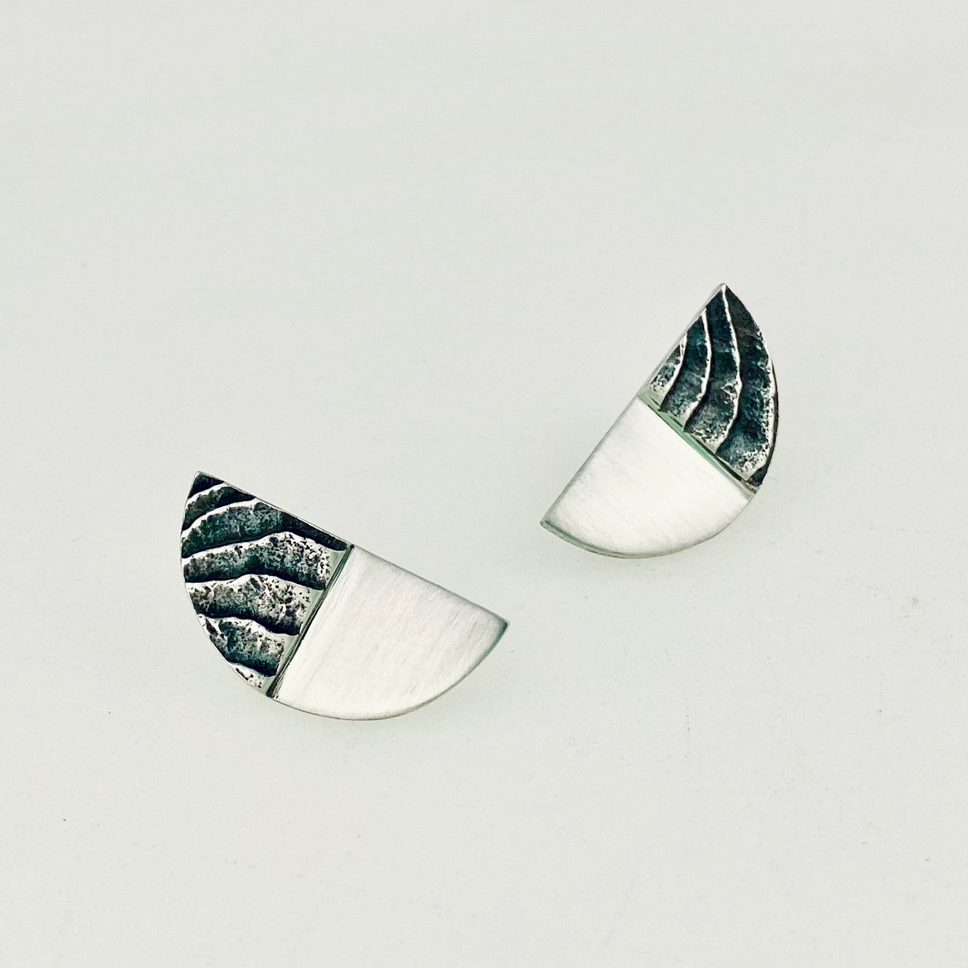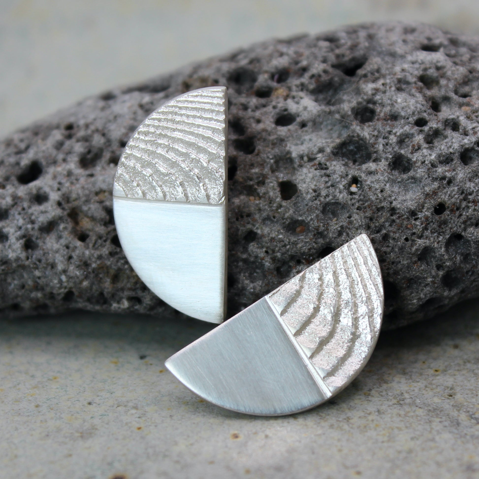Our Half Moon studs pair the deep folds of oceanic texture with the soft silver light of the moon.