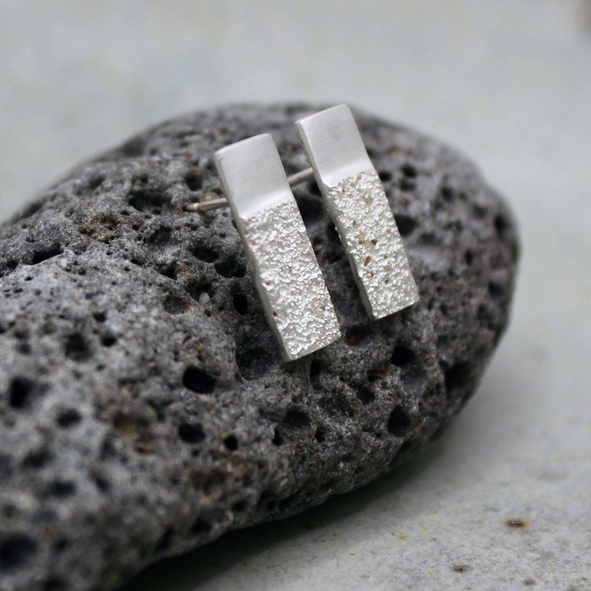 Made entirely by hand, from natural and recycled materials - we make each piece by pouring 100% recycled silver into a hand-made mould of beach sand.