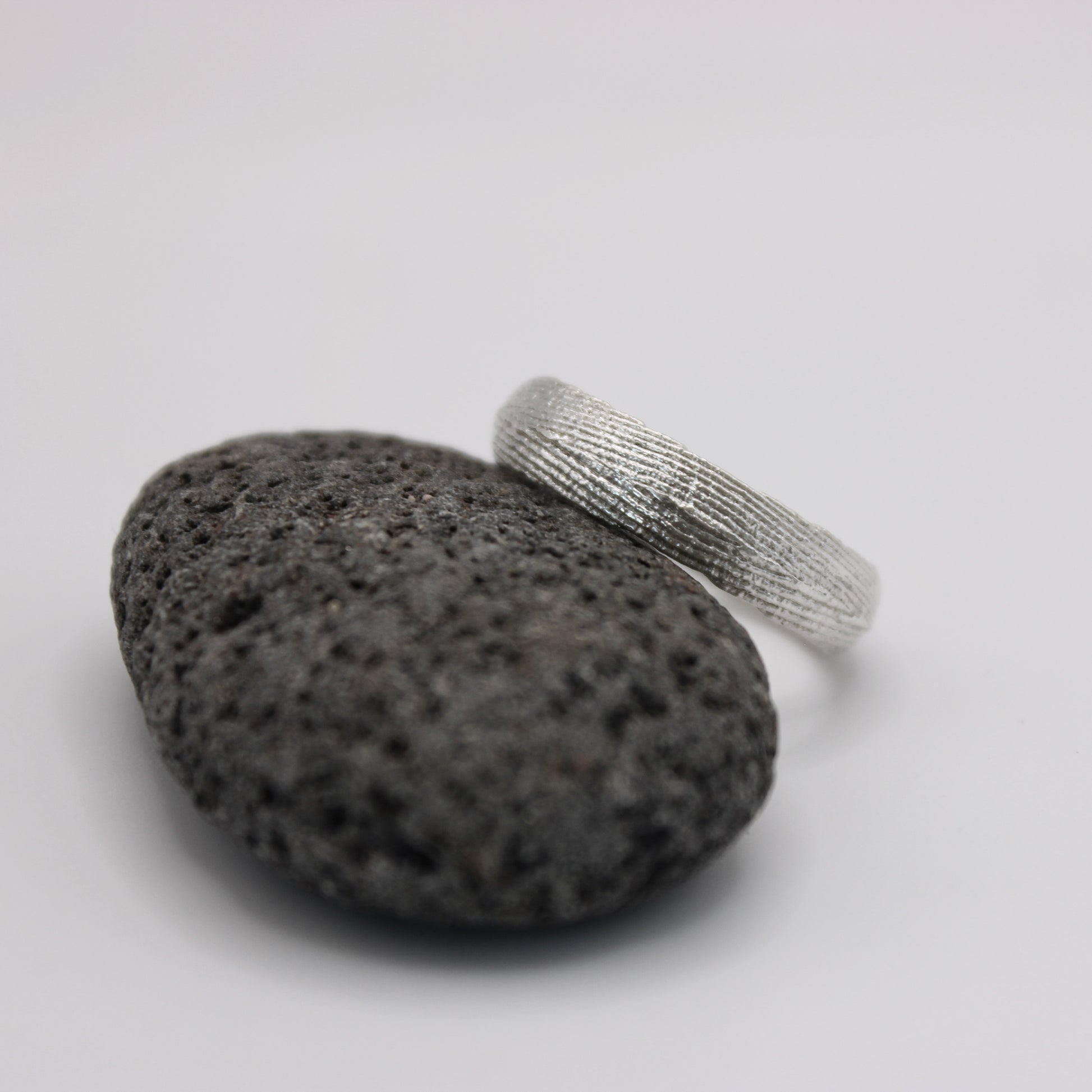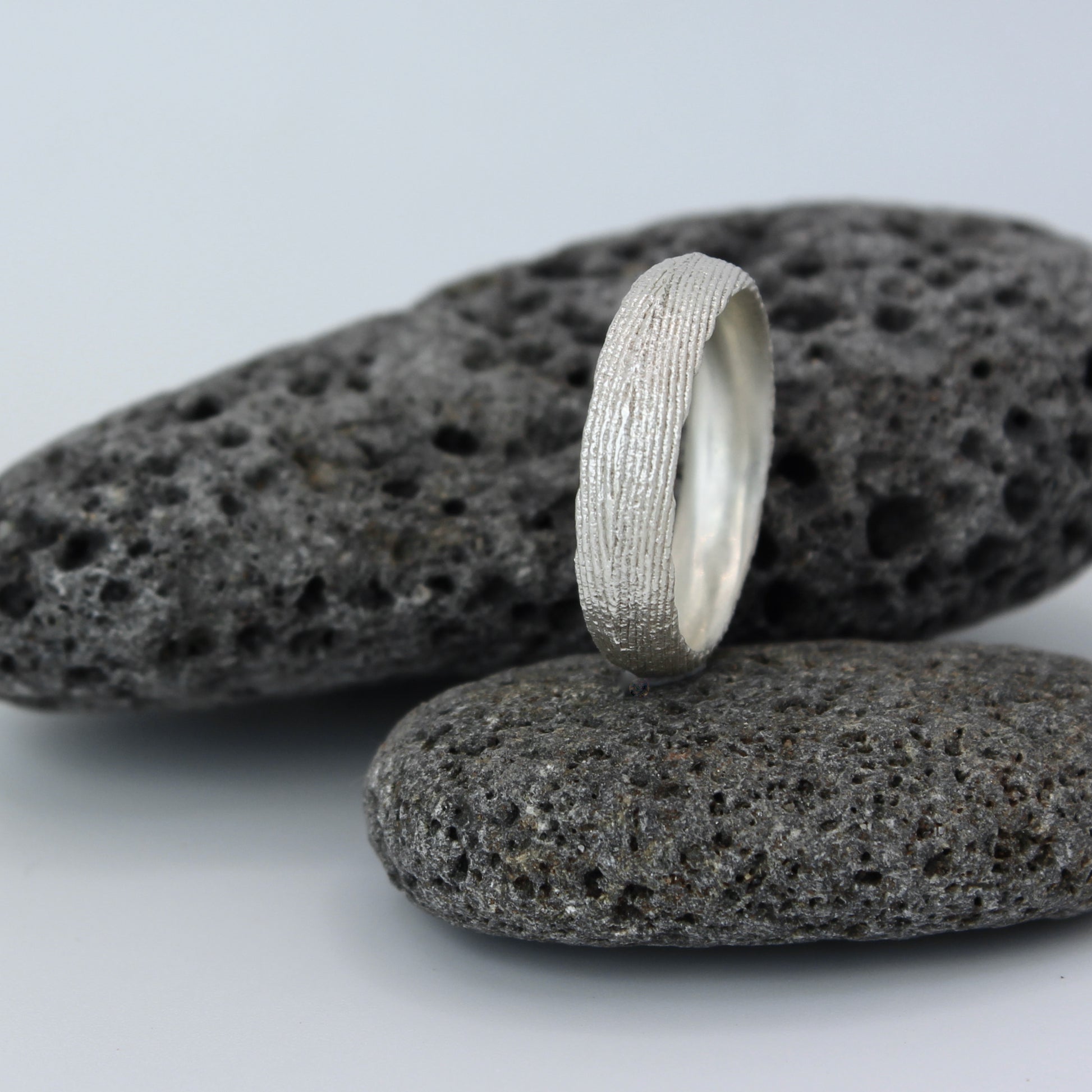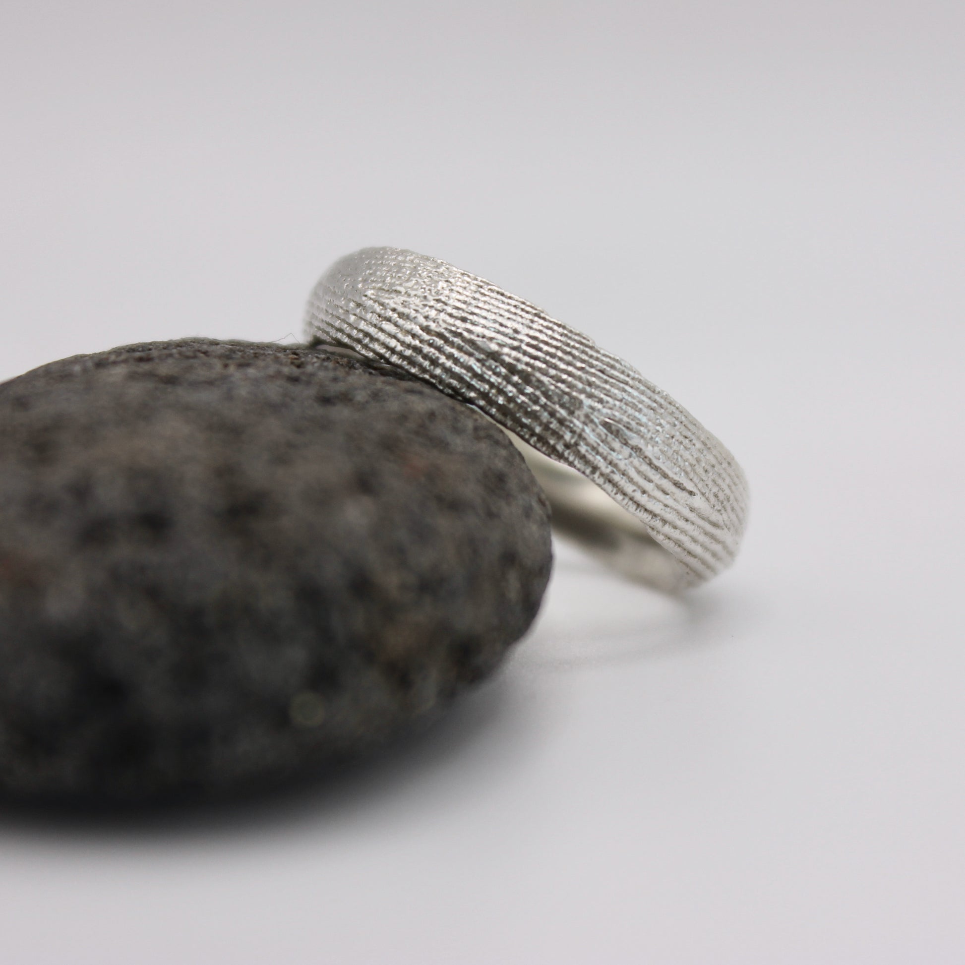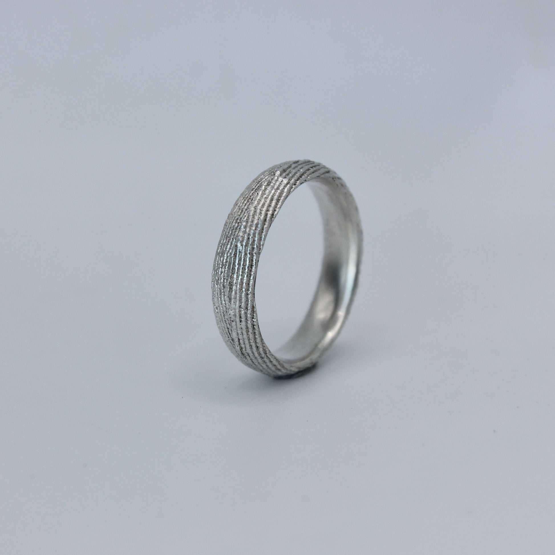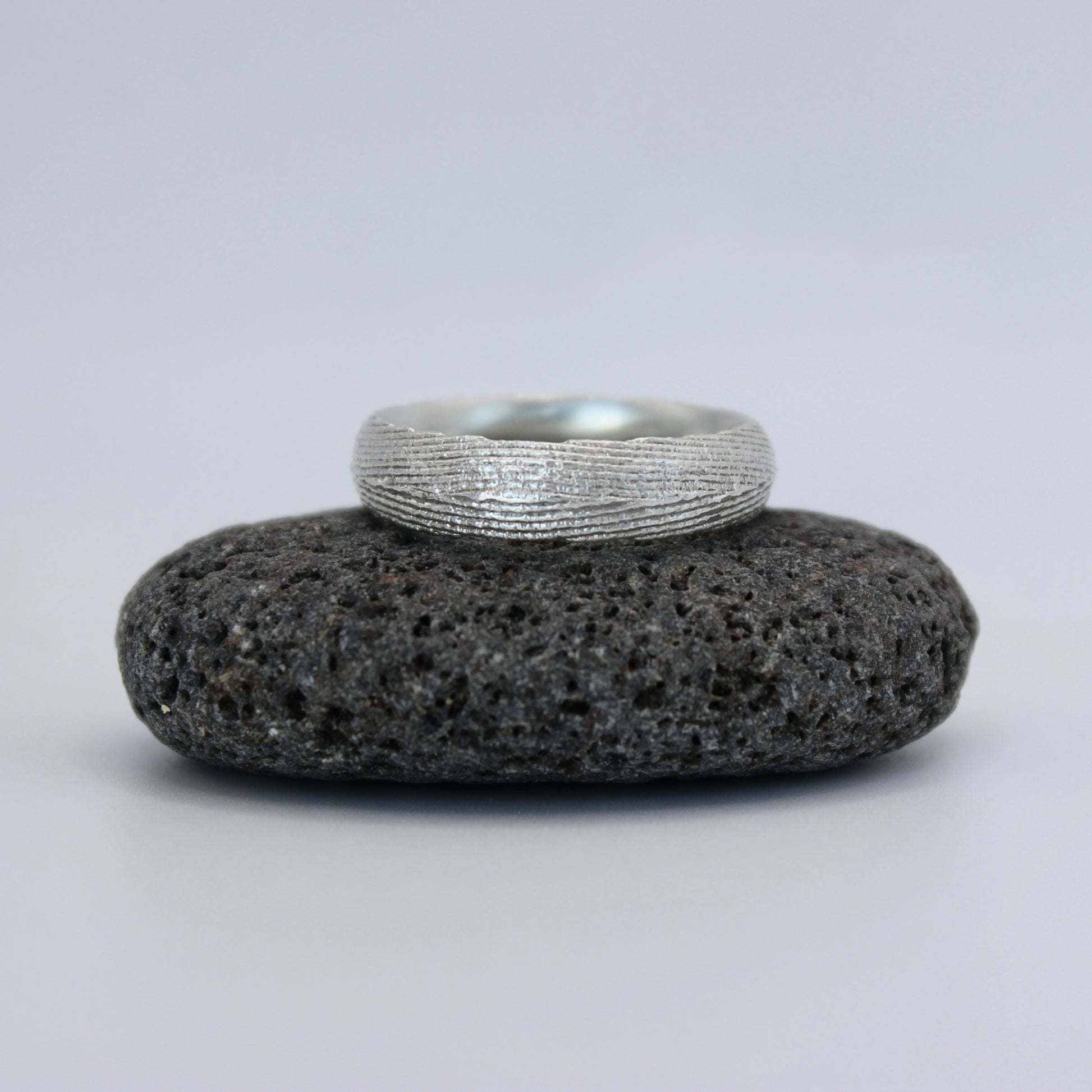 The curved surface means the texture really ripples around the ring and catches the light from all angles. We also dome the inside by hand for a 'comfort fit' finish - perfect for those less used to wearing rings.