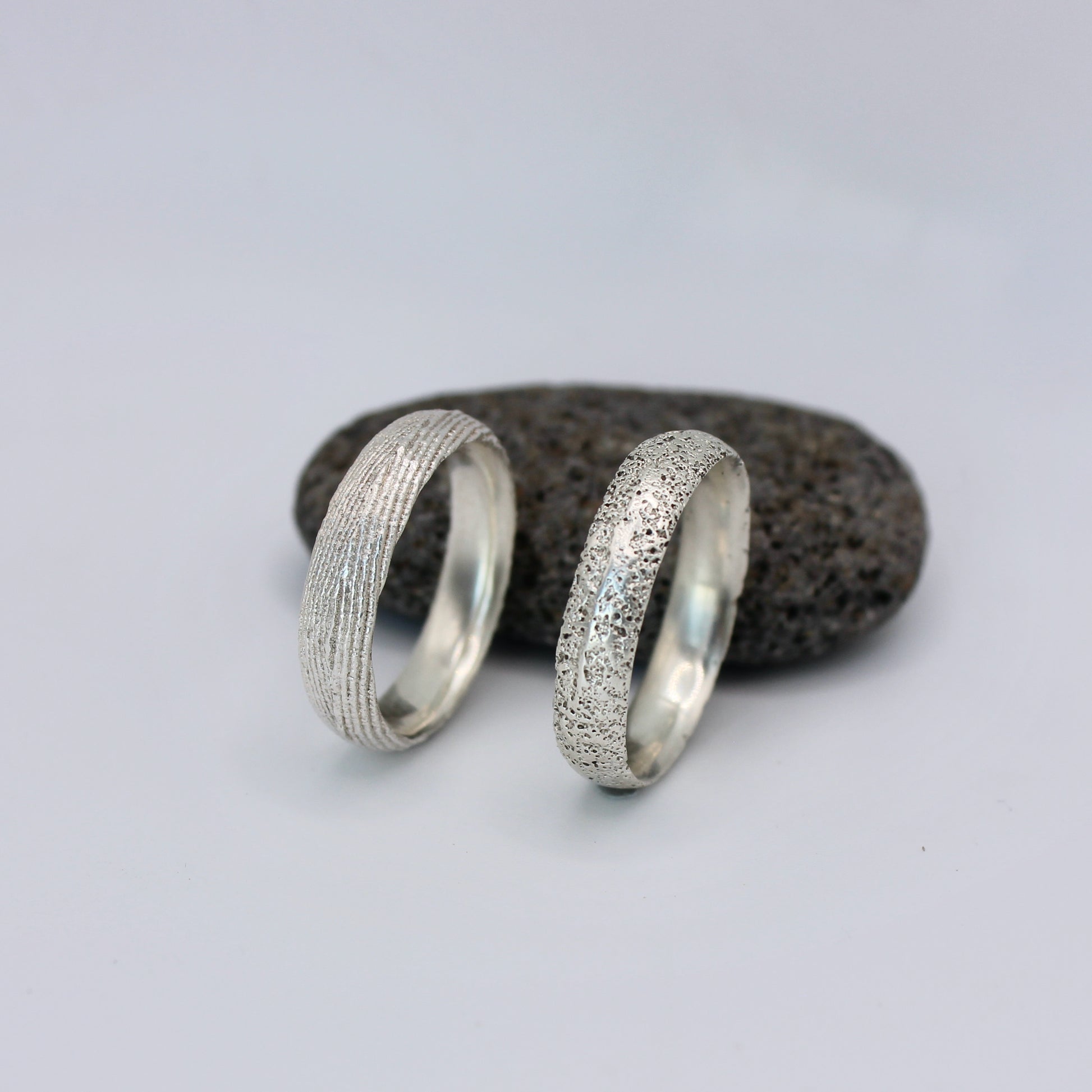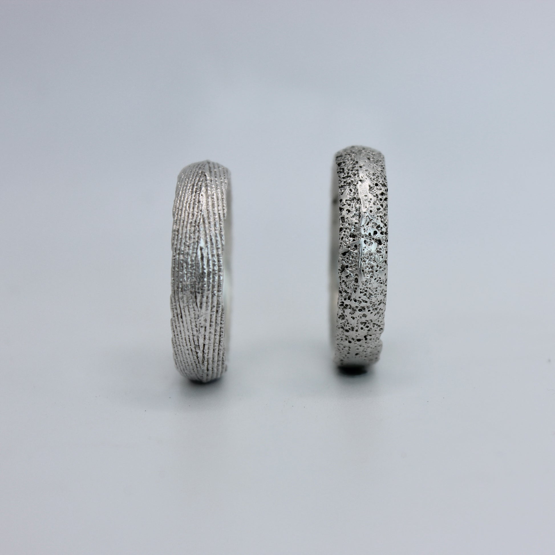 As we make a new mould for every piece, each ring has its own unique texture - like a fingerprint from the coast. We can even use sand from a beach that means something to you, for an extra sentimental piece!