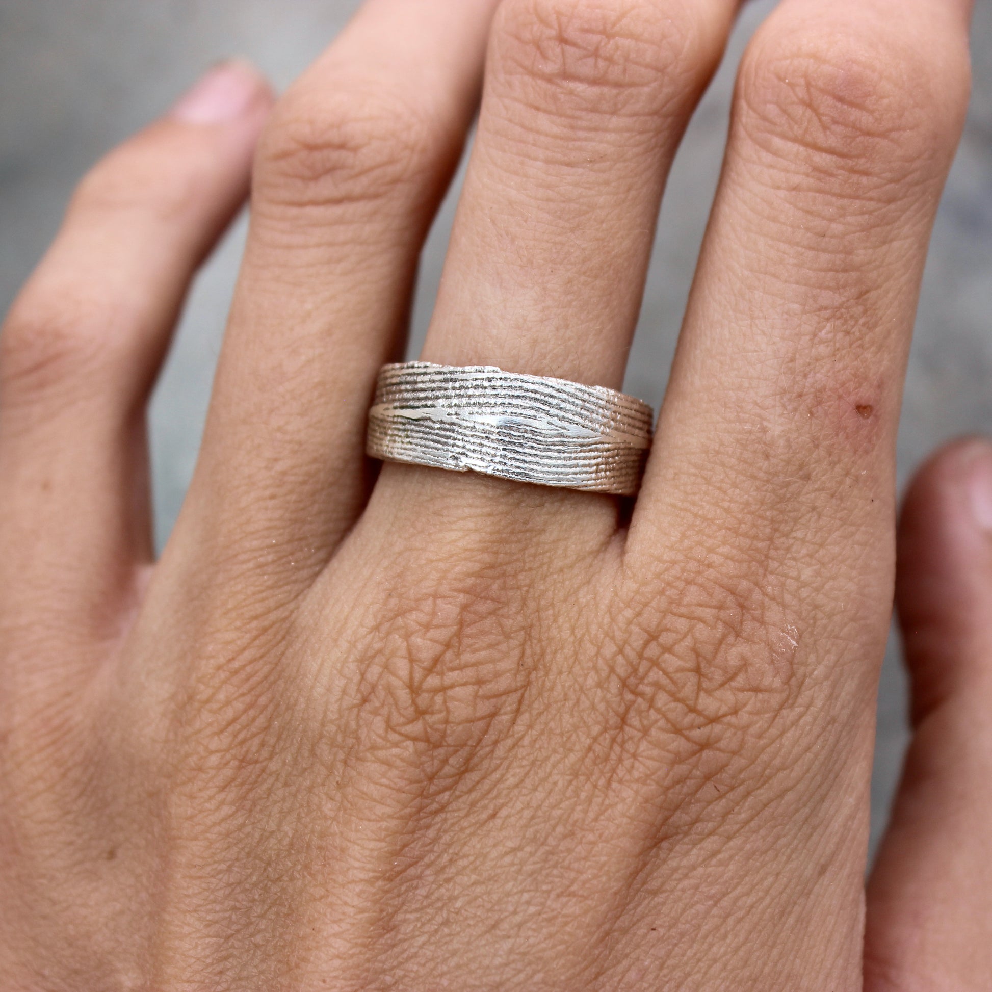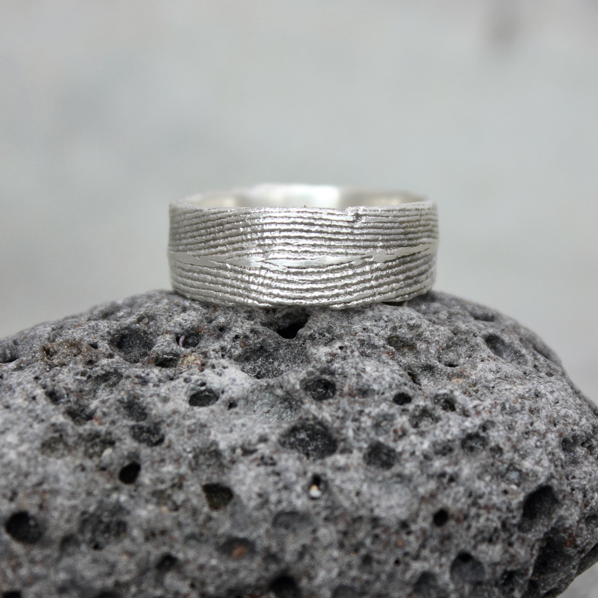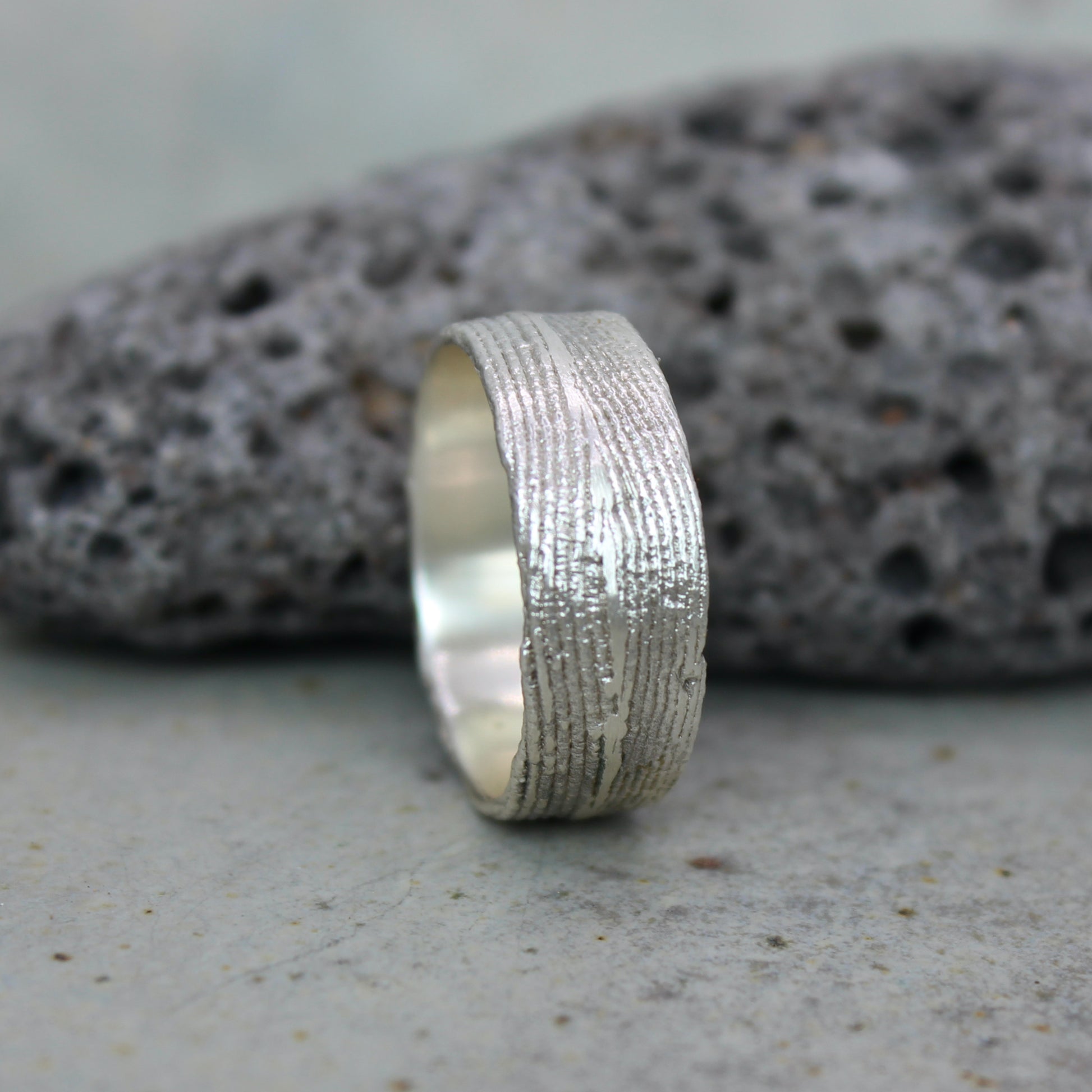 The flat surface of these rings also accentuates the natural texture, which rolls around your finger.