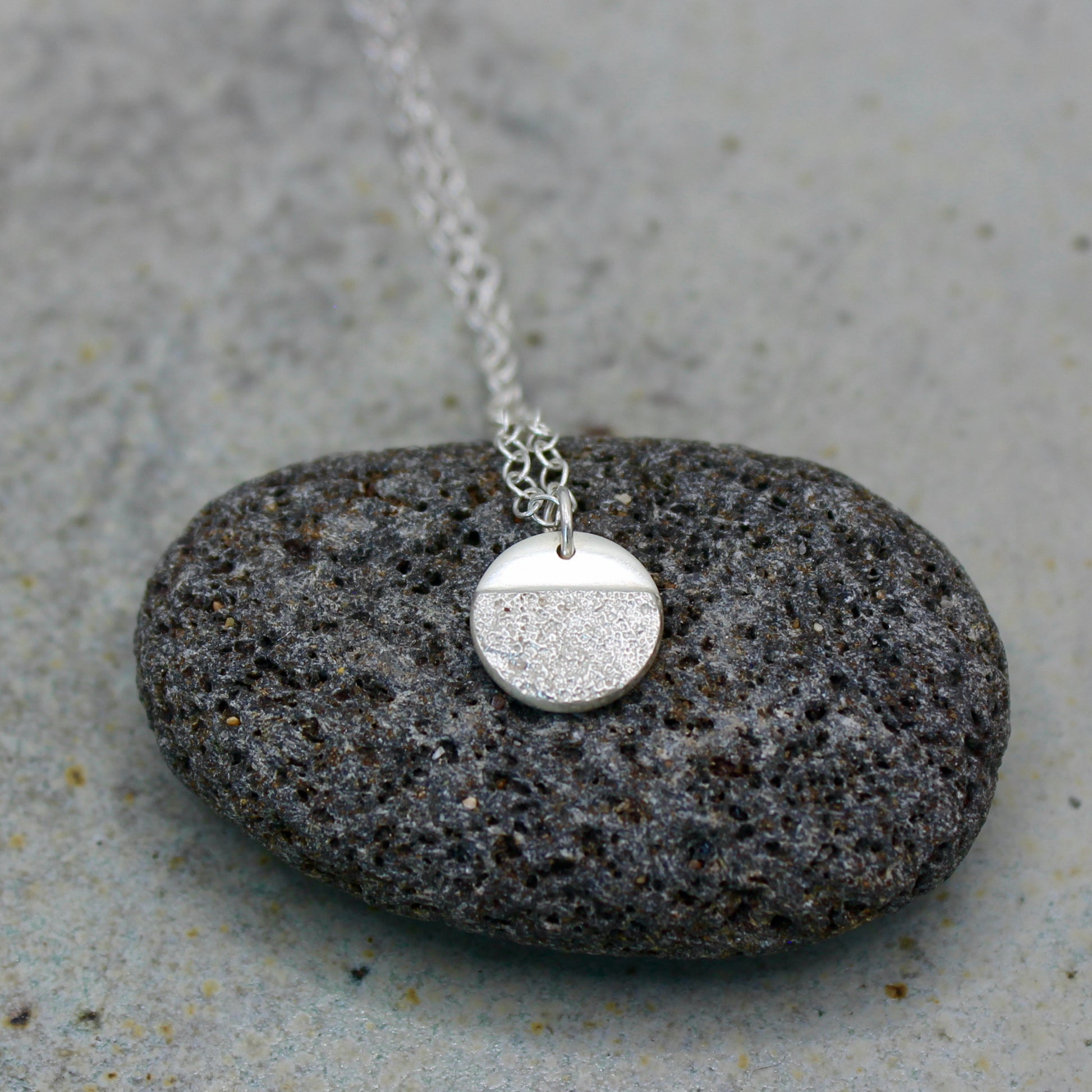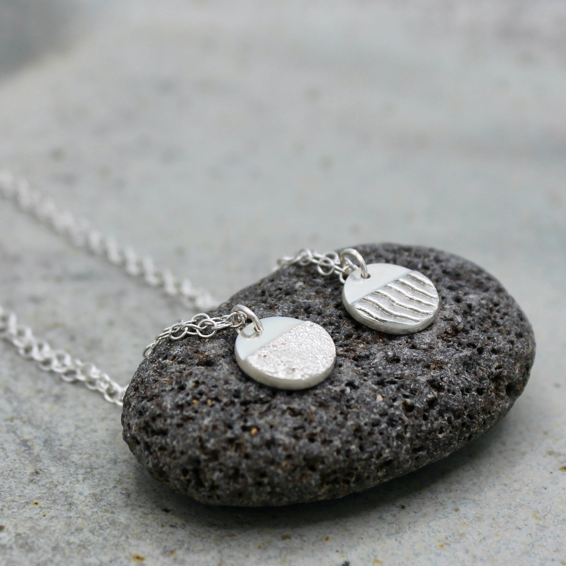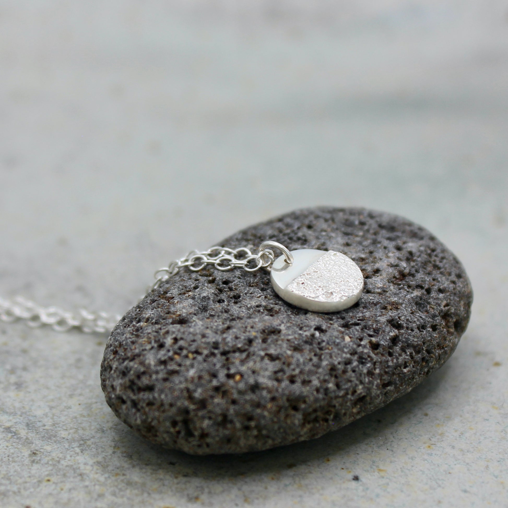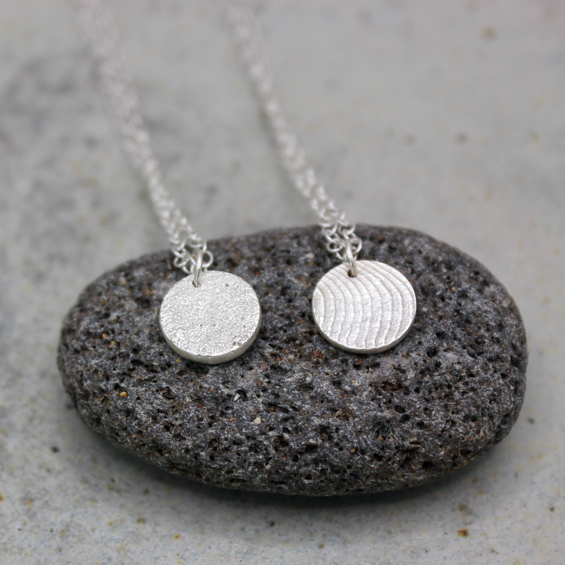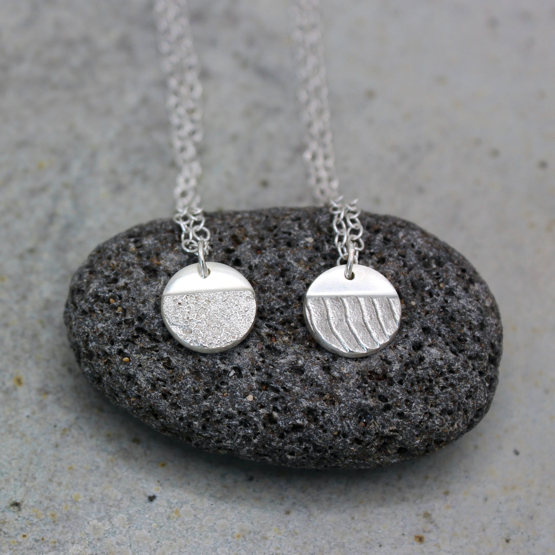 As we make a new mould for every piece, each pendant has its own unique texture - like a fingerprint from the coast. We can even use sand from a beach that means something to you, for an extra sentimental piece!