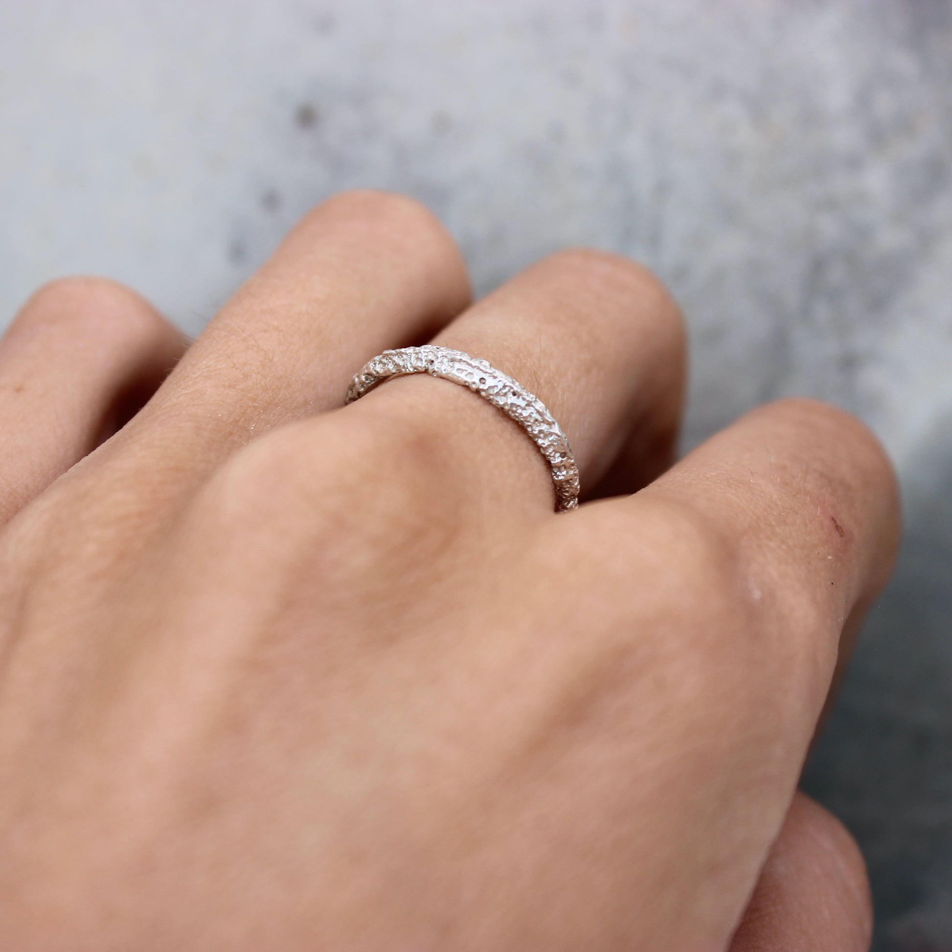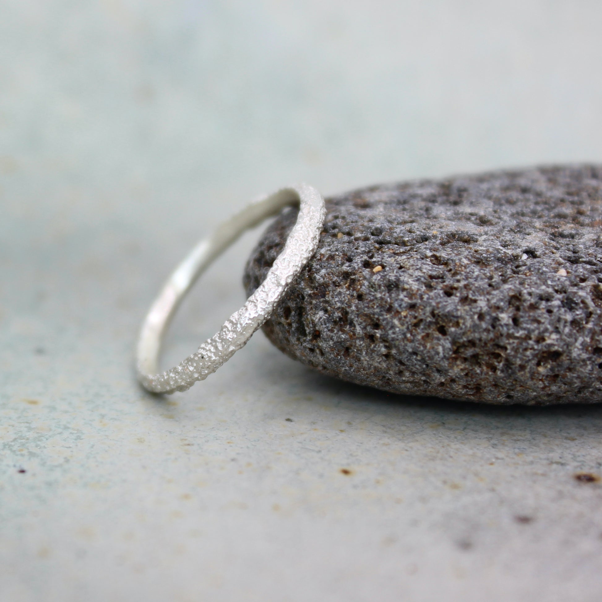 These rings are delicate yet packed full of texture - with different textures rippling right around the band. Contemporary and slim, they are beautiful on their own or stacked.