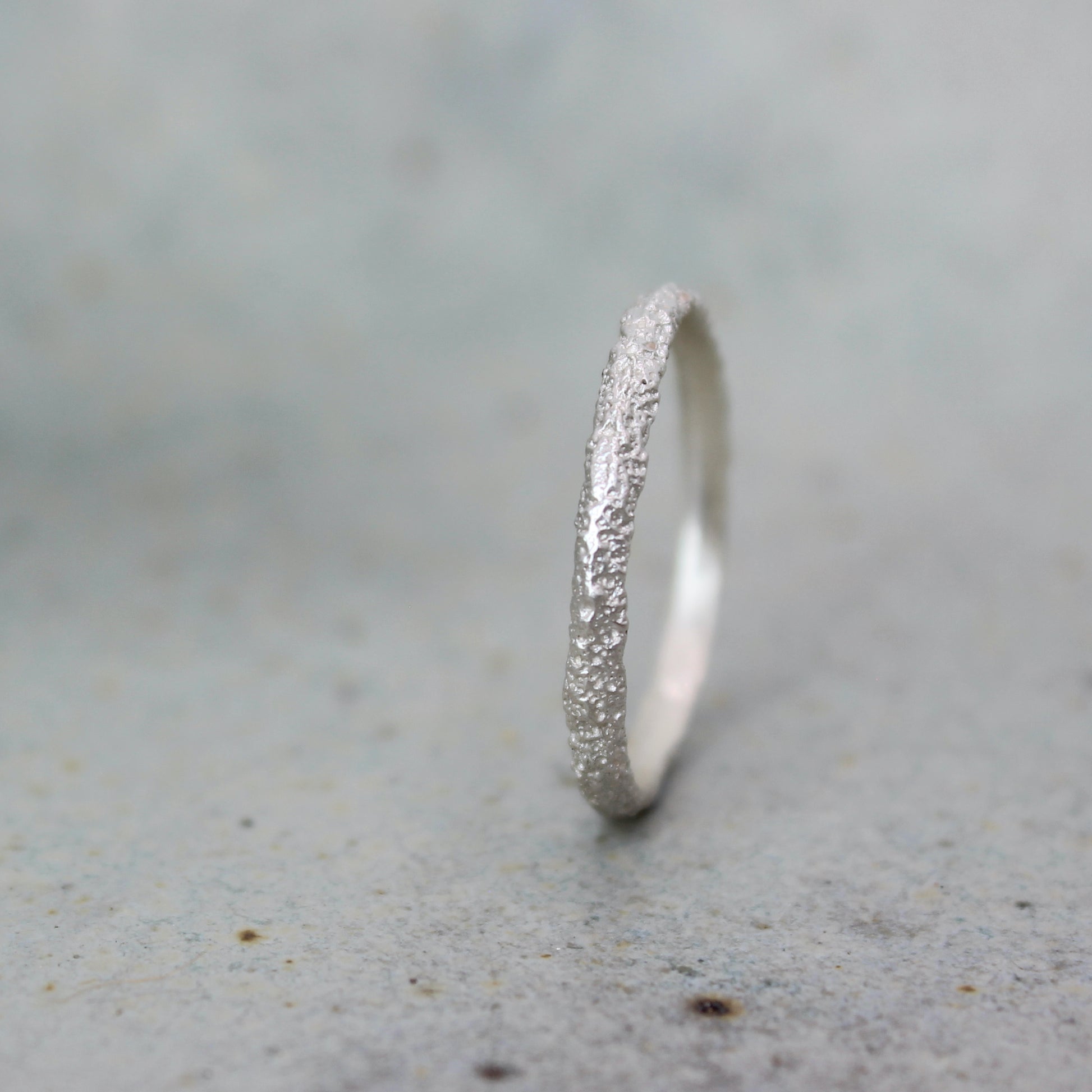 As we make a new mould for every piece, each ring has its own unique texture - like a fingerprint from the coast. We can even use sand from a beach that means something to you, for an extra sentimental piece!